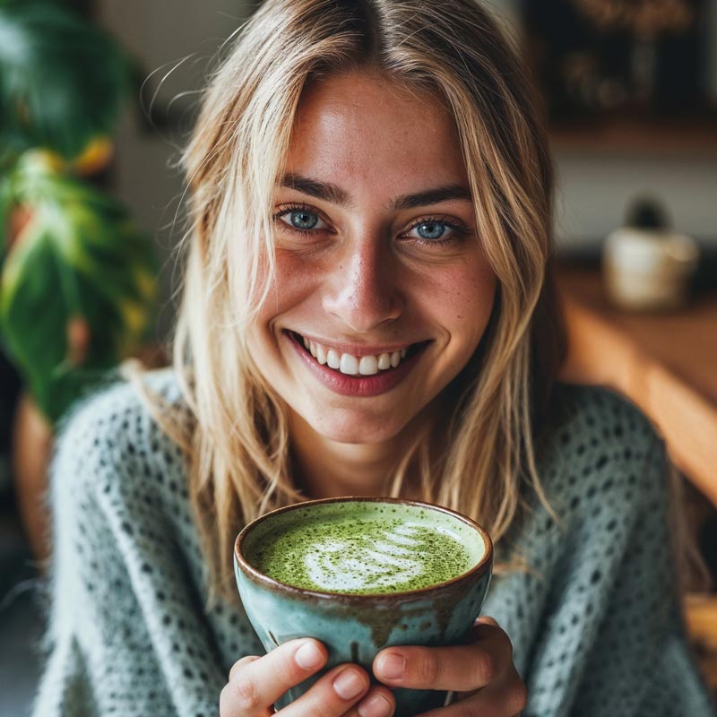 Mit einem Matcha erhältst du ca. 40mg Koffein. Dieses wird langsam und über längere Zeit abgegeben. So hast du den ganzen Tag Energie - ohne Herzrasen oder Koffeincrash.
